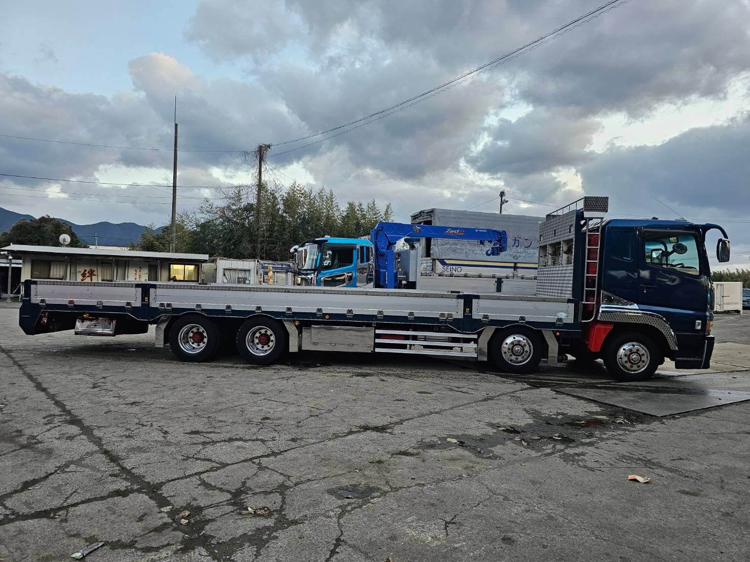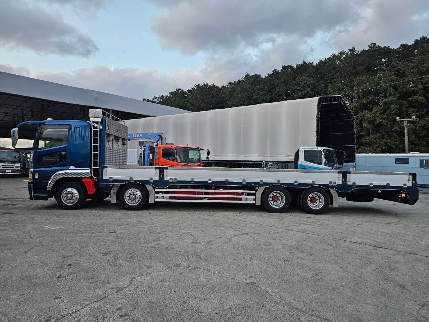 三菱  スーパーグレート 4軸低床平ボディ 380馬力 バックカメラ付 ETC付 最大積載量13,500㎏ 車検令和8年6月12日  平成16年2月