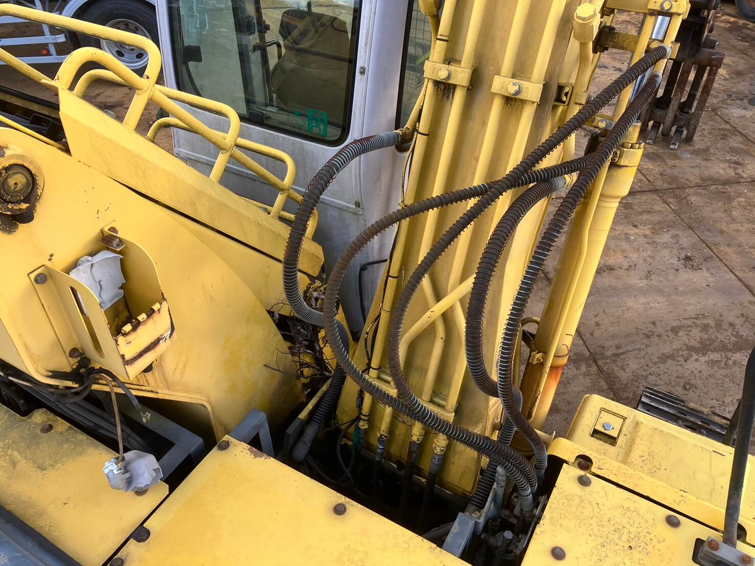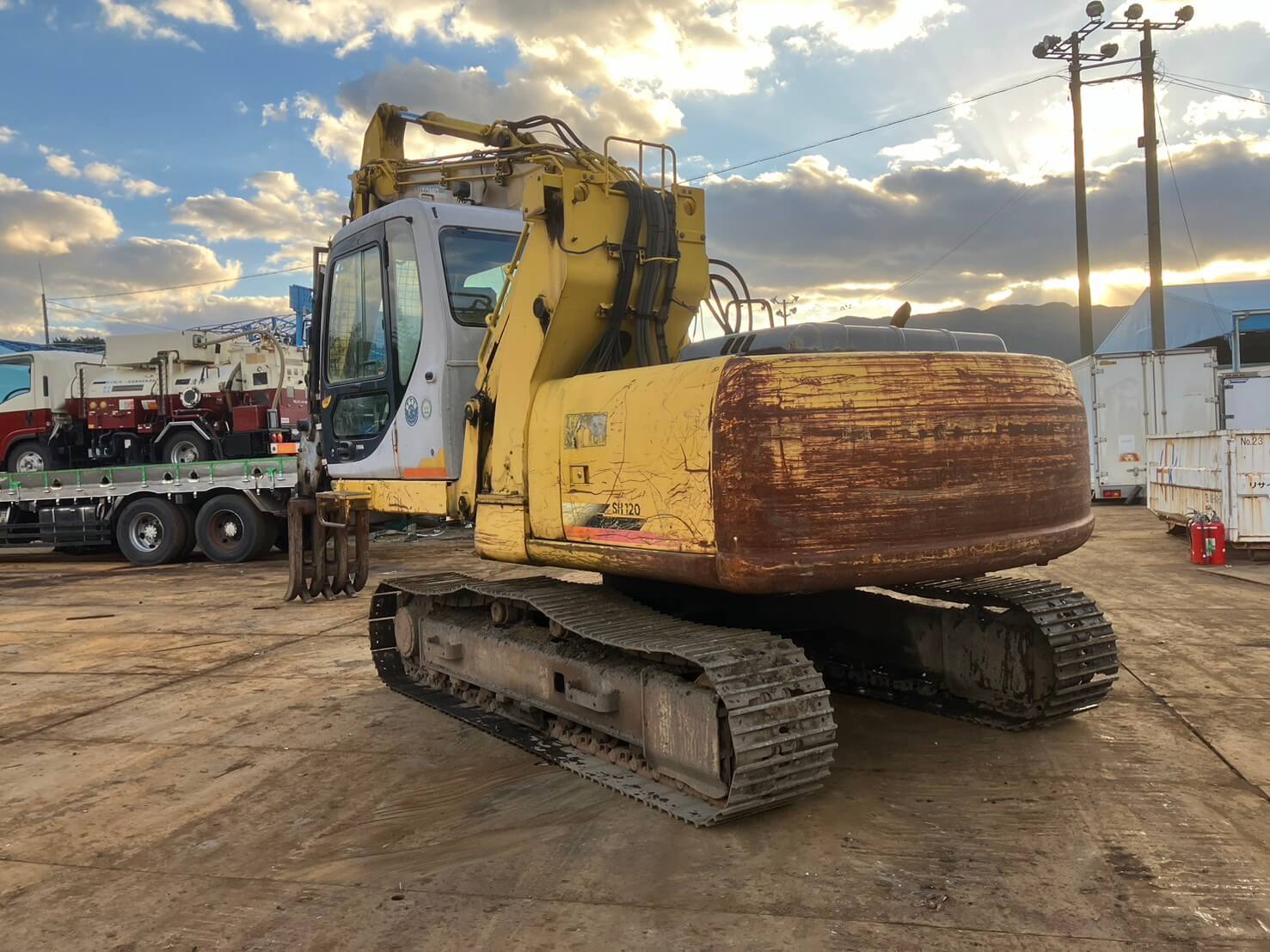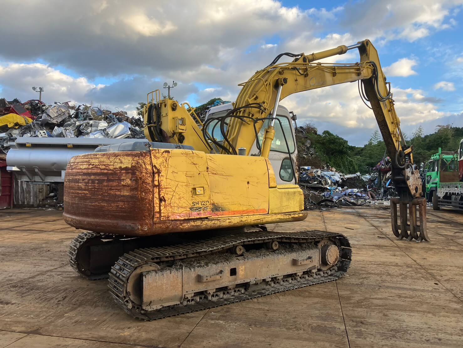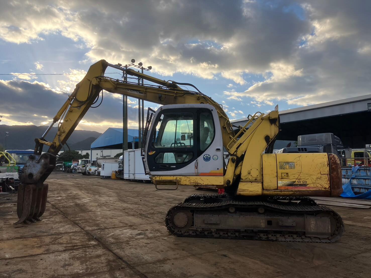 SH120-3 油圧ショベル 5本配管 エレベーターキャビン 丸順製掴みアタッチメント アワーメーター10,763h |