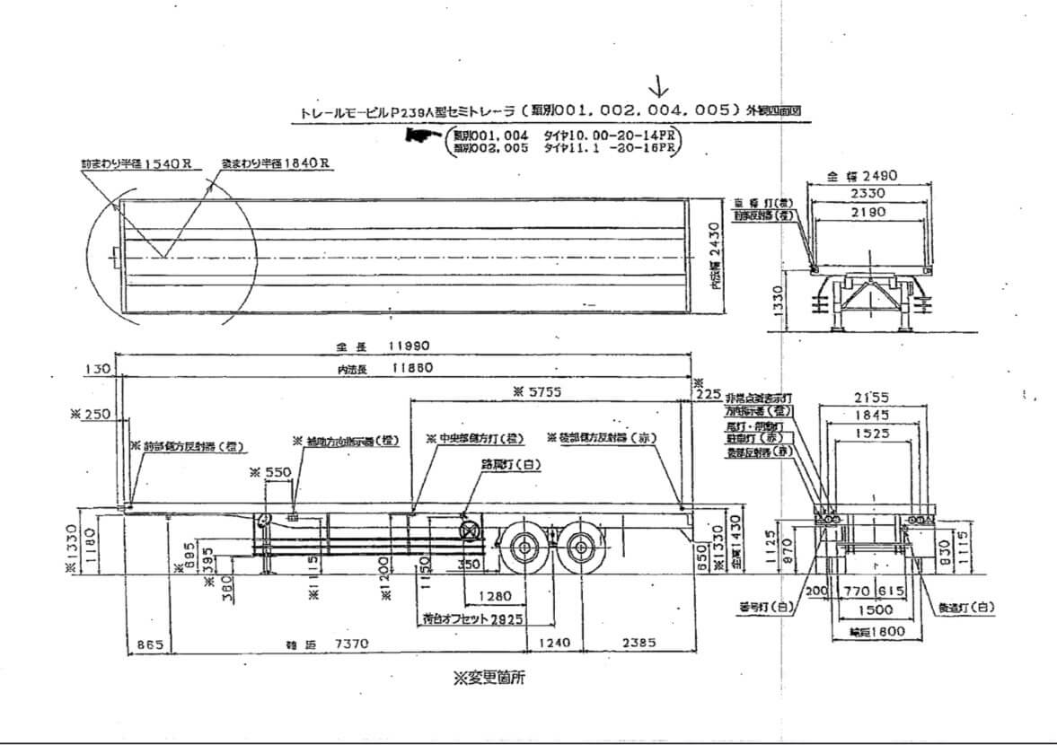 トレールモービル P239A セミトレーラ 木床 スタンション穴付 床フック付 第五輪荷重8,180㎏以上 最大積載量20,000㎏ 昭和54年4月