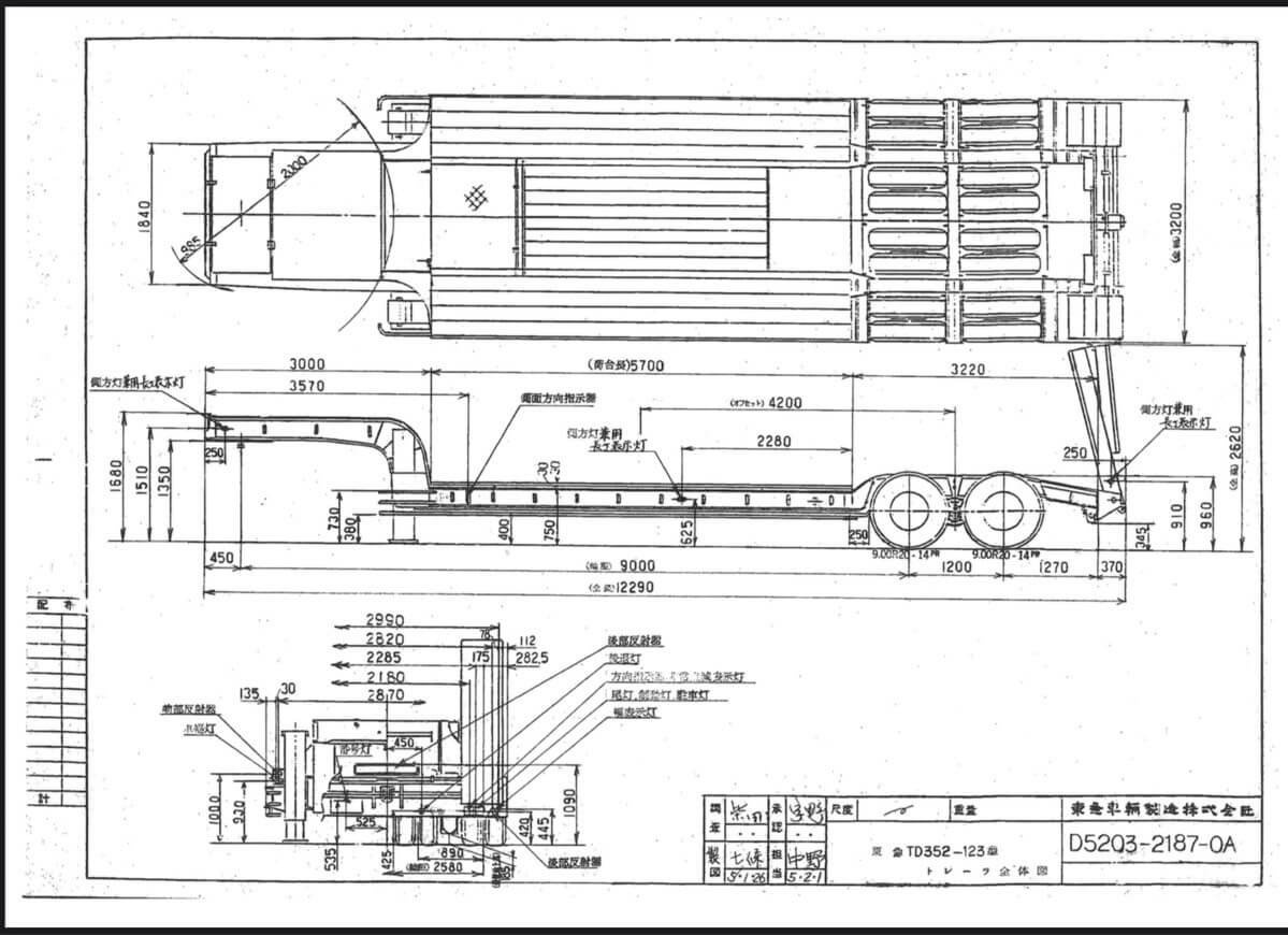 東急 TD352-123 セミトレーラ 油圧式自動歩み タイヤサイズ:275/70R22.5 第五輪荷重17,590㎏以上 最大積載量31,000㎏ 平成5年6月
