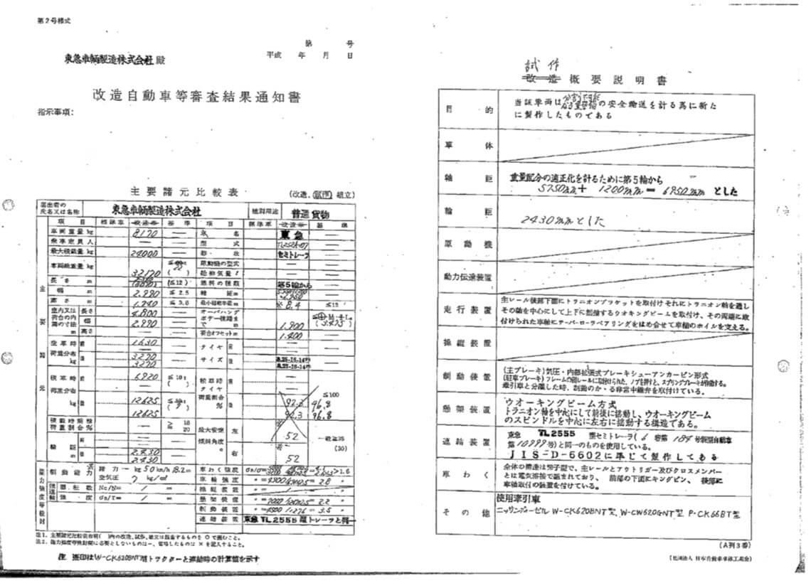 東急 TL252A-107 セミトレーラ 緩和車輌 第五輪荷重6,770㎏以上 最大積載量23,300㎏ 平成6年12月