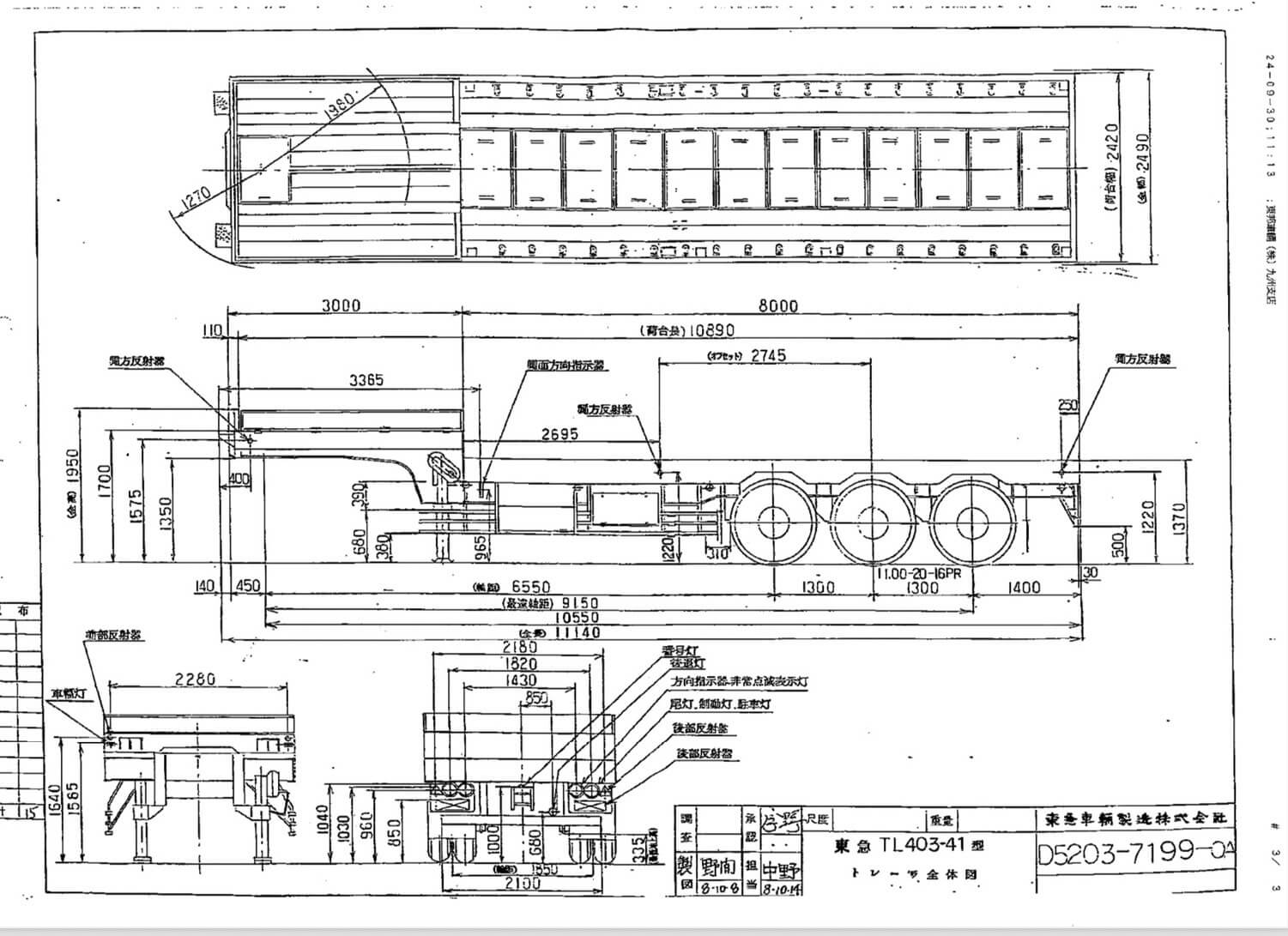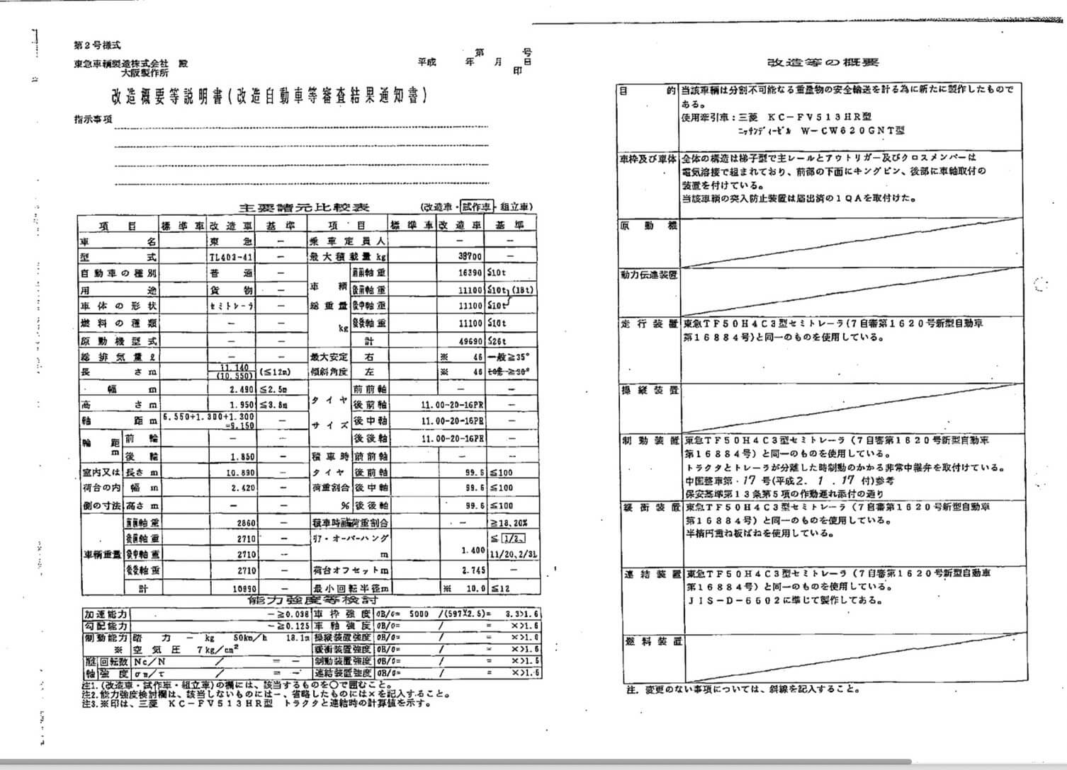 東急 TL403-41 セミトレーラ ABS規制適合車 第五輪荷重11,550㎏以上 最大積載量26,500㎏ 平成8年12月